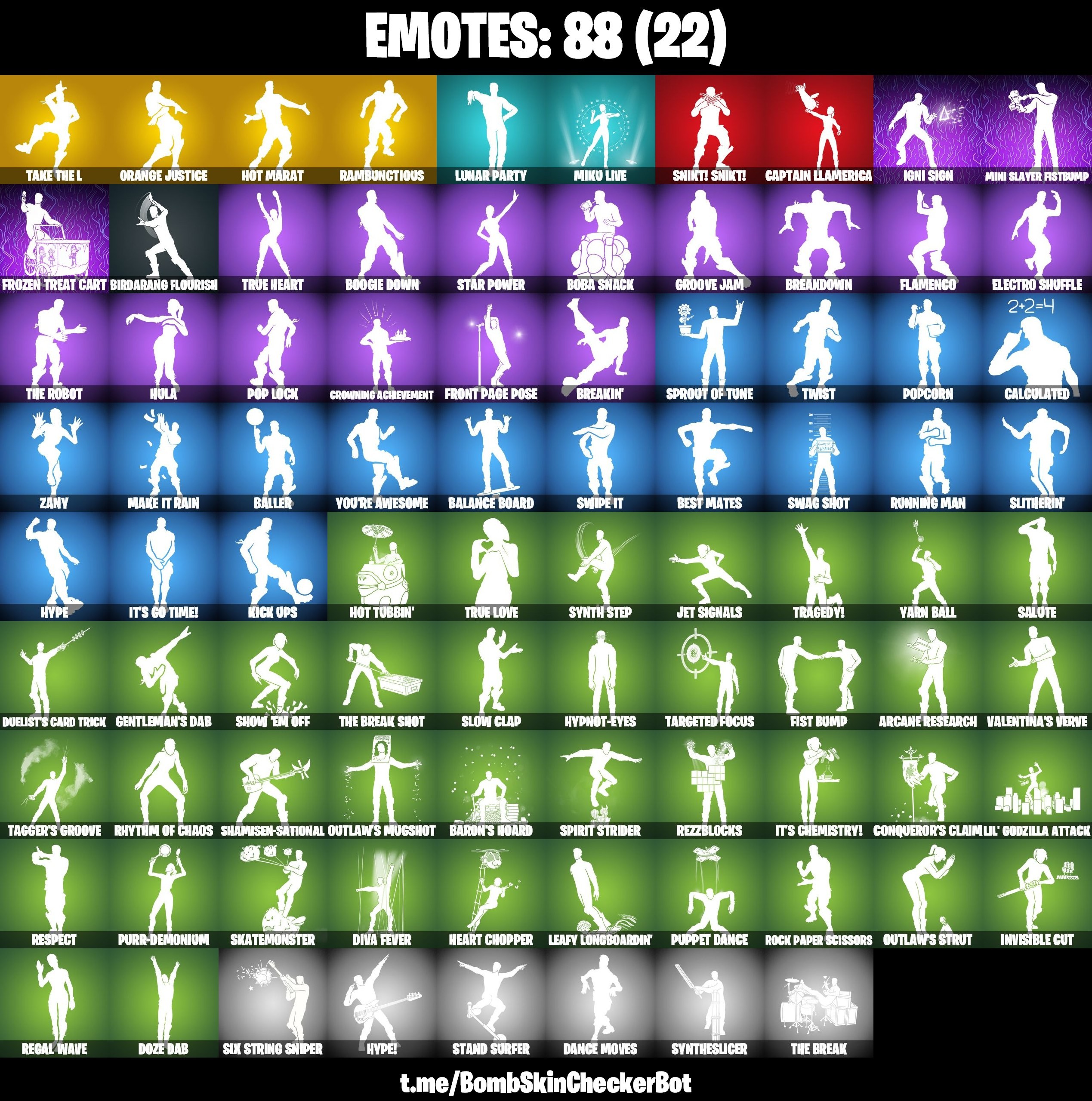 This account is further stacked with desirable, unobtainable emotes, including the legendary **Take The L** and the popular **Rambunctious** dance. These emotes are massive flexes that signal early dedication to the game. The locker also includes the **Elite Agent** skin (Season 3) and the full set of Reaper cosmetics, including **Reapers Back** and **Reaper Skull** back blings. The 93 skins provide a solid foundation of cosmetic variety, perfect for any player looking to quickly build a history-rich locker.