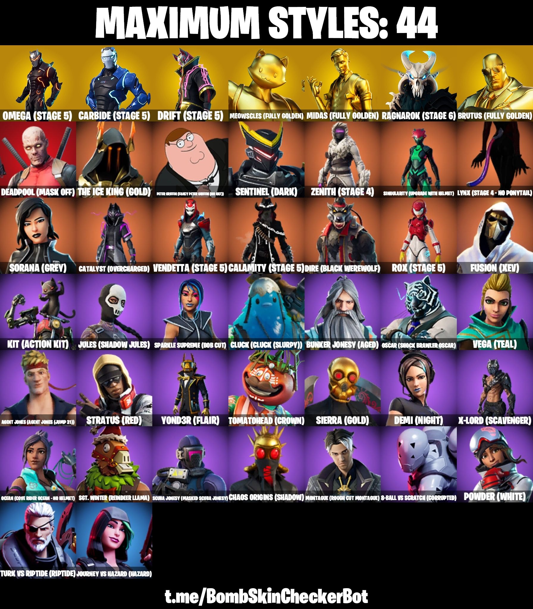 This locker is stacked with deep OG history. It includes the **Blue Squire** skin from the Season 2 Battle Pass, the iconic **The Reaper** skin from Season 3, and the prestigious **Full Omega** skin from Season 4. This combination of early-season Tier 100 skins makes this a truly veteran collection. Furthermore, the account features the classic OG emote **Take The L**, another highly sought-after dance that is no longer obtainable. The sheer volume of 213 skins provides immense cosmetic flexibility, appealing to both OG collectors and modern crossover fans.