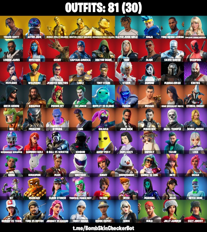 Fortnite Account ( PLAYSTATION / XBOX / PC / MOBILE / NINTENDO ) (Travis Scott, Leviathan Axe, Diamond Jack, Kratos, Travis Scotts Emotes) (81 Skins)