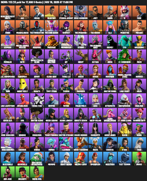 Home » Products » Fortnite Account ( XBOX ) (Gear Specialist Maya, Lara Croft, Raz, Midas, Blastoff, Eternal Knight, Spire Assassin, Joey, Ronin, Vi, Fade, Torin, Mandalorian, The Foundation, Tempest, Alli, Predator) (113 Skins)