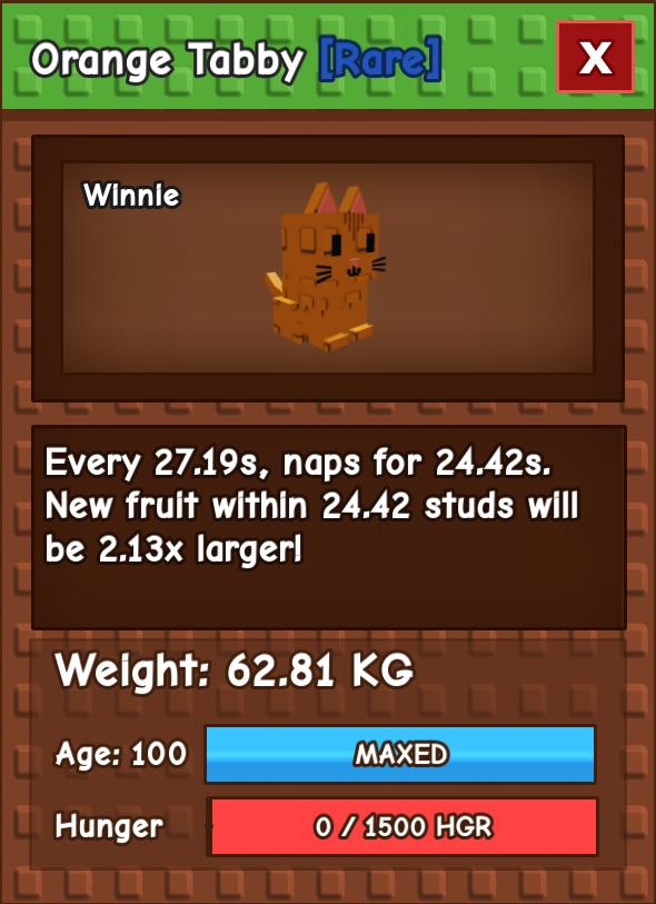 Huge Orange Tabby (62,81 KG AGE 100) Grow A Garden – Show off to Your Friends Now !!!