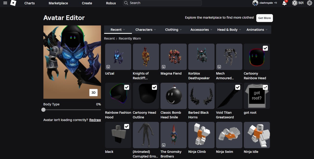 Korblox + Fake Headless | 70K+ Total | 500 robux balance | Outsale skins | Full Access