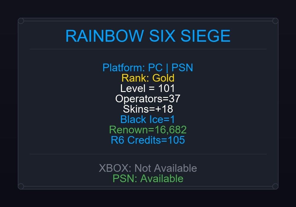 If the account level is above 50+, you can play Rainbow Six Siege Ranked Ready matches. You can see all the skins and every detail from here r6skins.locker/profile/bfef25bc-0cd4-499e-867b-2781358b7e69