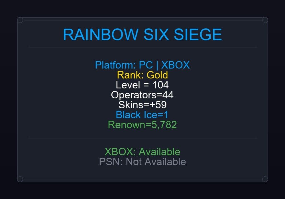 If the account level is above 50+, you can play Rainbow Six Siege Ranked Ready matches. You can see all the skins and every detail from here r6skins.locker/profile/9cdb68d5-120e-4458-b973-198c7b613858