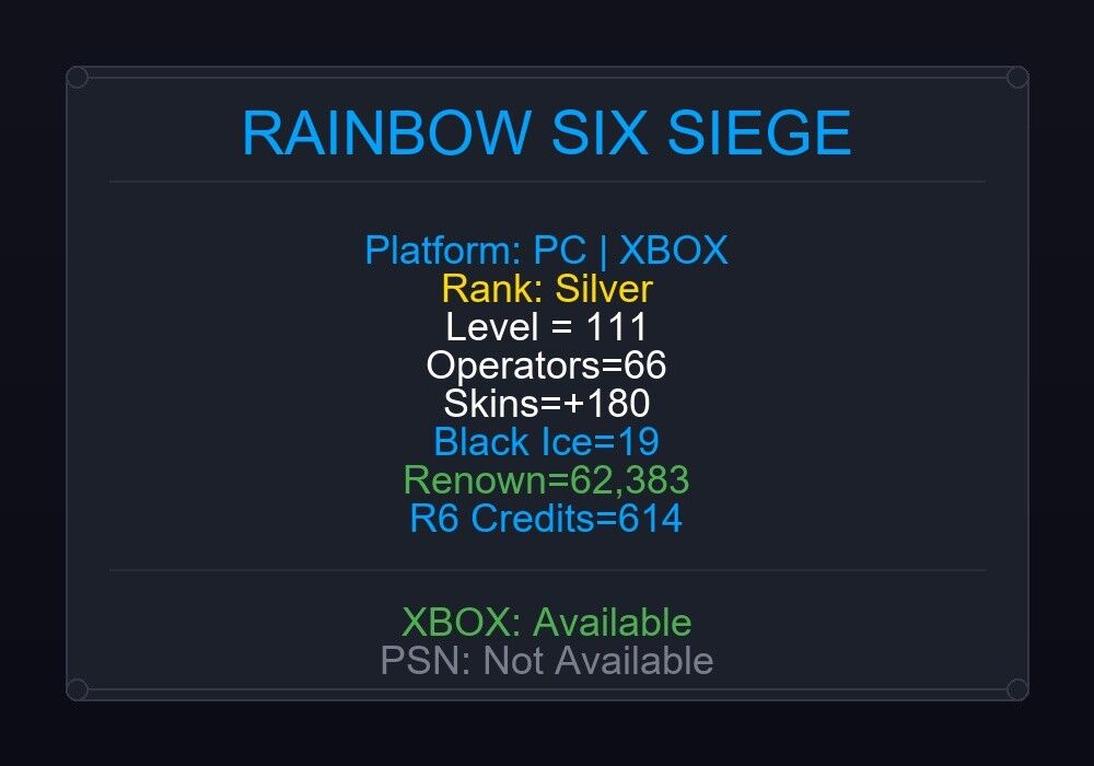 If the account level is above 50+, you can play Rainbow Six Siege Ranked Ready matches. You can see all the skins and every detail from here r6skins.locker/profile/d3ccda22-b2ee-4e06-a223-eff77cf93141