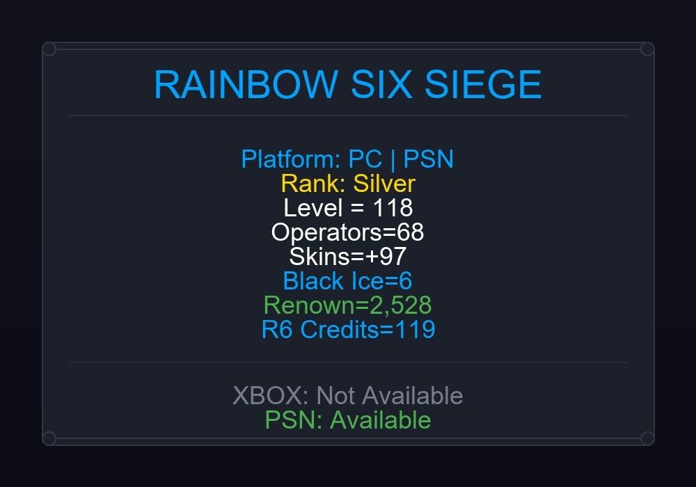 If the account level is above 50+, you can play Rainbow Six Siege Ranked Ready matches. You can see all the skins and every detail from here r6skins.locker/profile/f14368bd-1ecd-48f9-b735-65ce0590200c