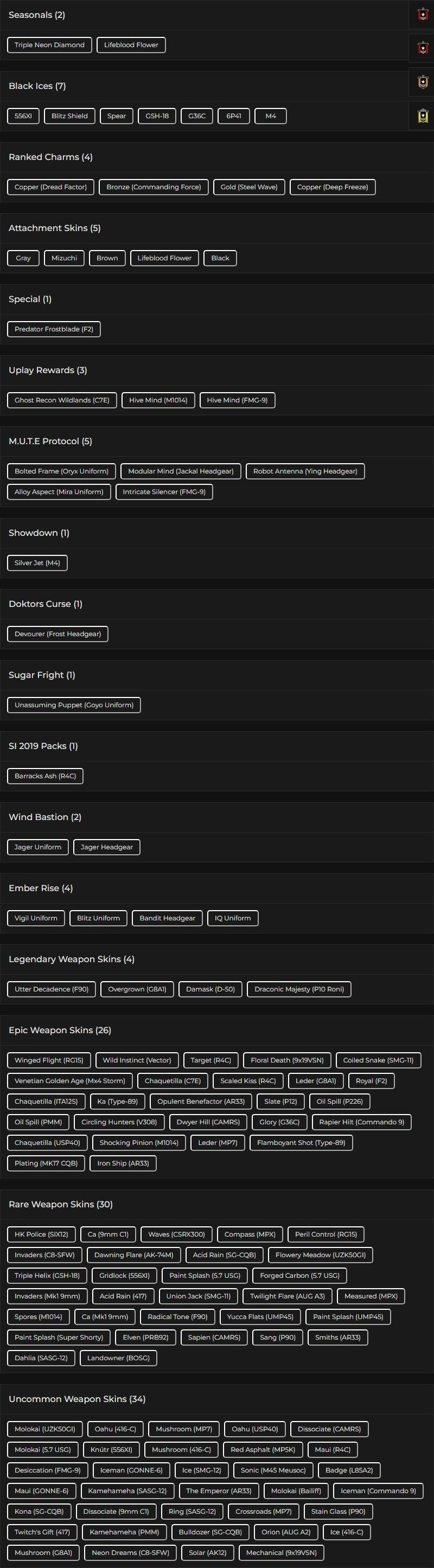 You can see all the skins and every detail from here r6skins.locker/profile/ba37cc29-2475-48e4-90d1-be1102fc9250
