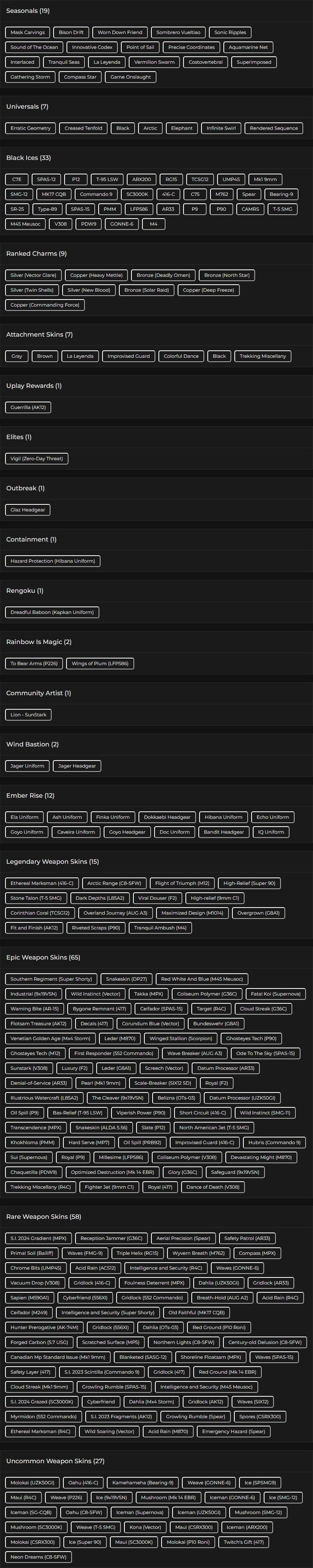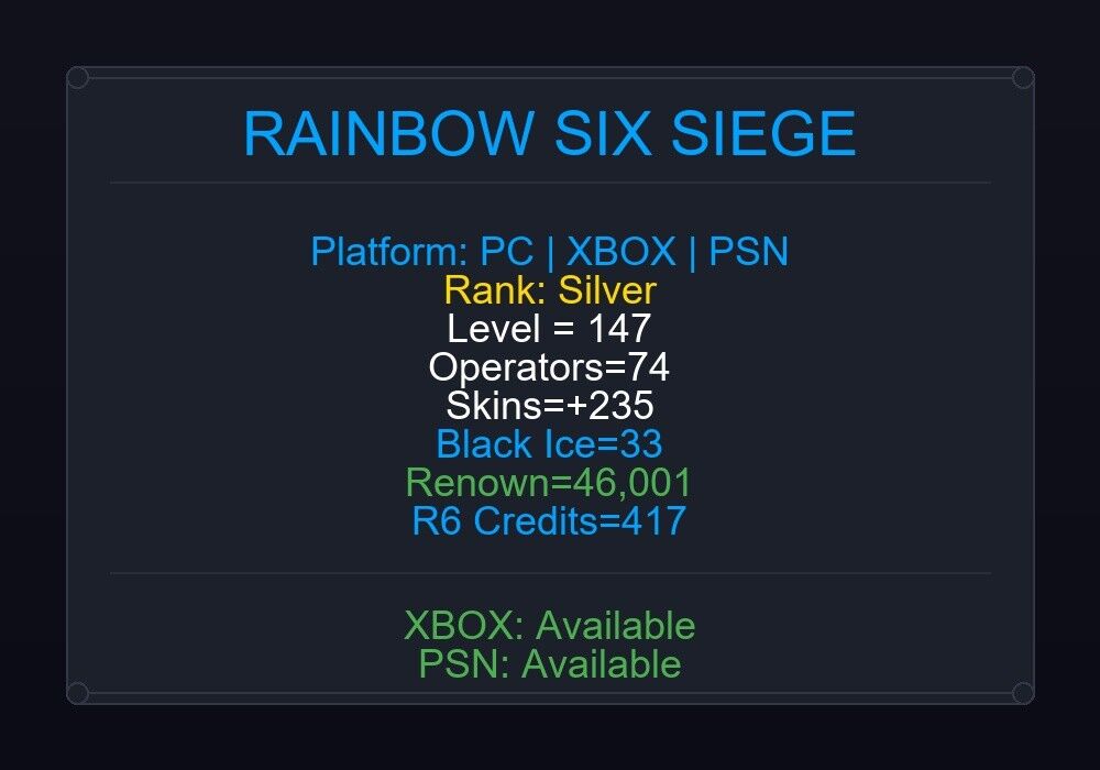 If the account level is above 50+, you can play Rainbow Six Siege Ranked Ready matches. You can see all the skins and every detail from here r6skins.locker/profile/7c1c6e39-6562-47c7-9e18-62db70a7d226.