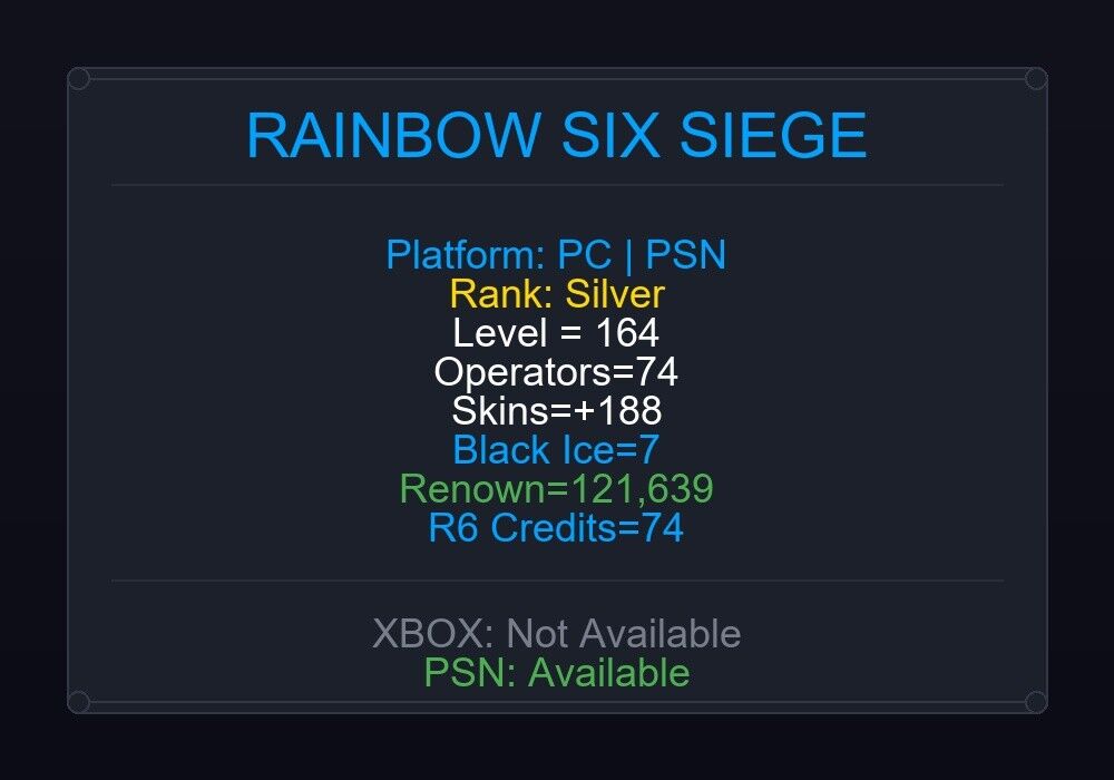 If the account level is above 50+, you can play Rainbow Six Siege Ranked Ready matches. You can see all the skins and every detail from here r6skins.locker/profile/11a69401-c187-4b88-98f0-5b1fa92134f1