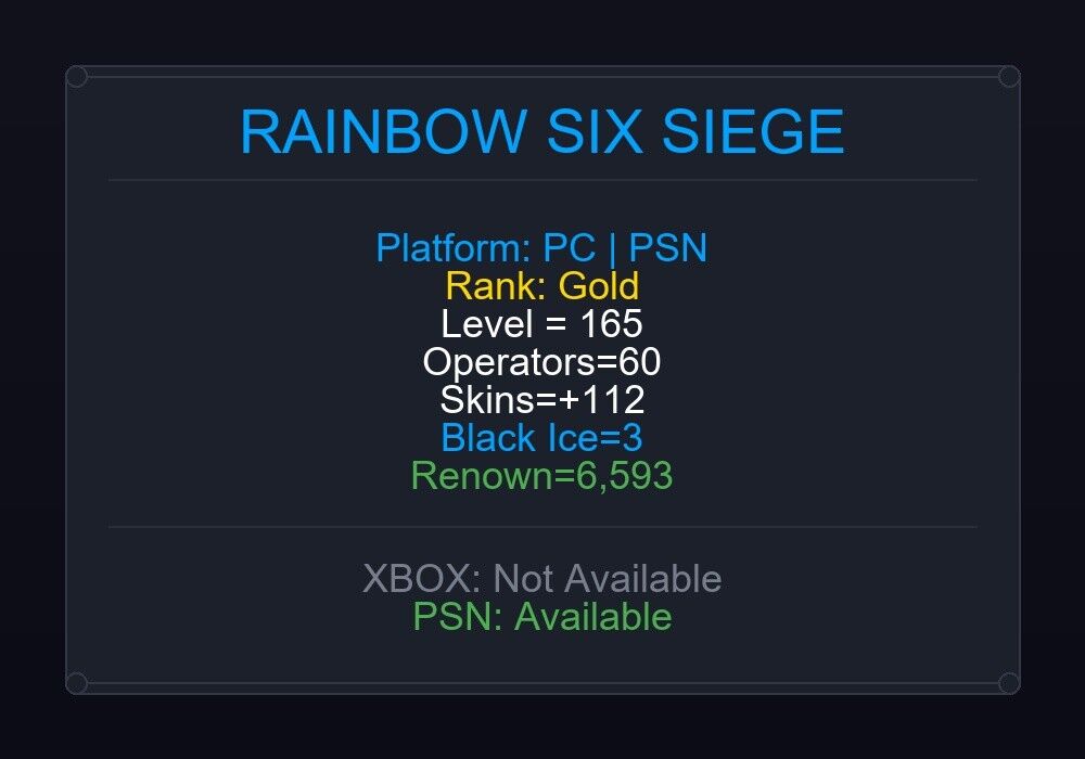If the account level is above 50+, you can play Rainbow Six Siege Ranked Ready matches. You can see all the skins and every detail from here r6skins.locker/profile/561a382a-989a-4565-89ac-b02c0f8d60f1