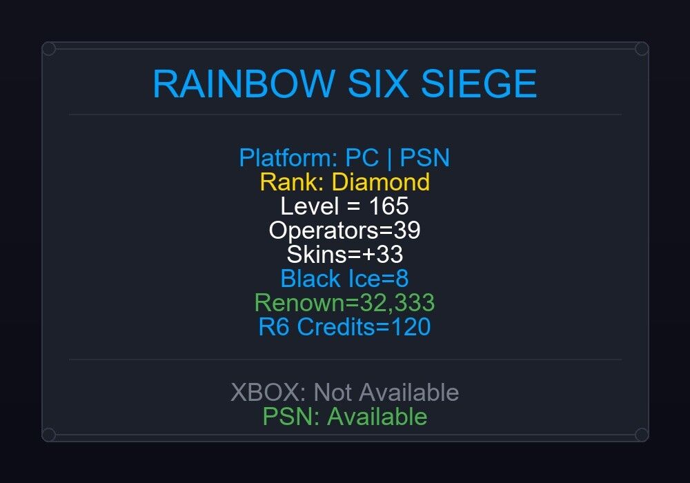 If the account level is above 50+, you can play Rainbow Six Siege Ranked Ready matches. You can see all the skins and every detail from here r6skins.locker/profile/e8f266ee-b177-41fb-b6ac-a2cde58f462f