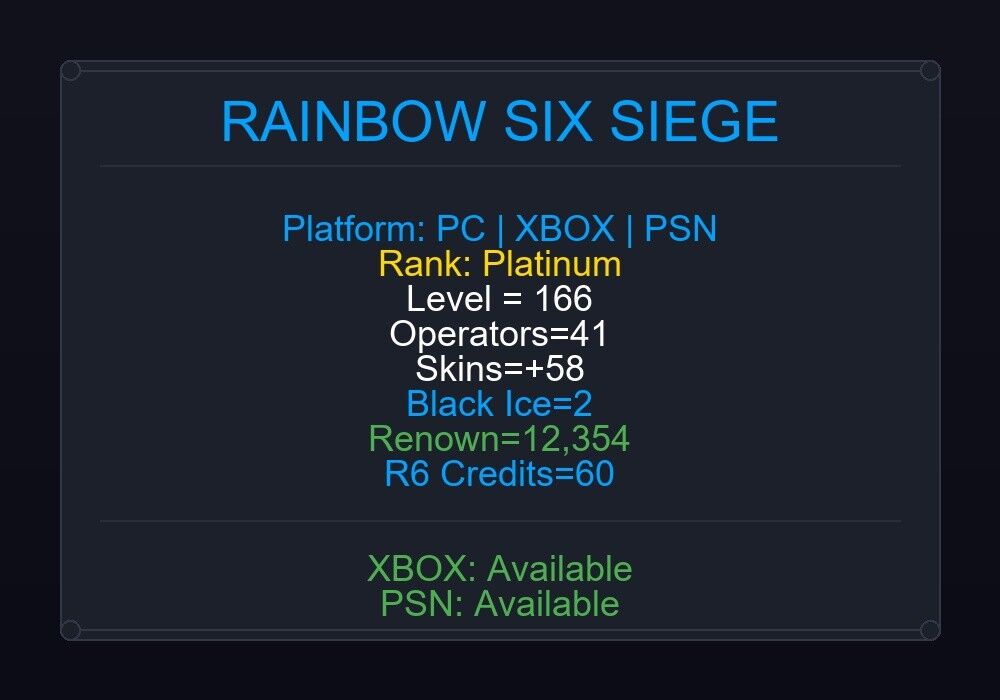 If the account level is above 50+, you can play Rainbow Six Siege Ranked Ready matches. You can see all the skins and every detail from here r6skins.locker/profile