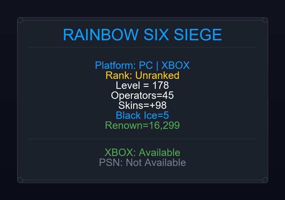 If the account level is above 50+, you can play Rainbow Six Siege Ranked Ready matches. You can see all the skins and every detail from here r6skins.locker/profile/c5e9e72e-c015-4e8d-99ed-ada29a7fe47a