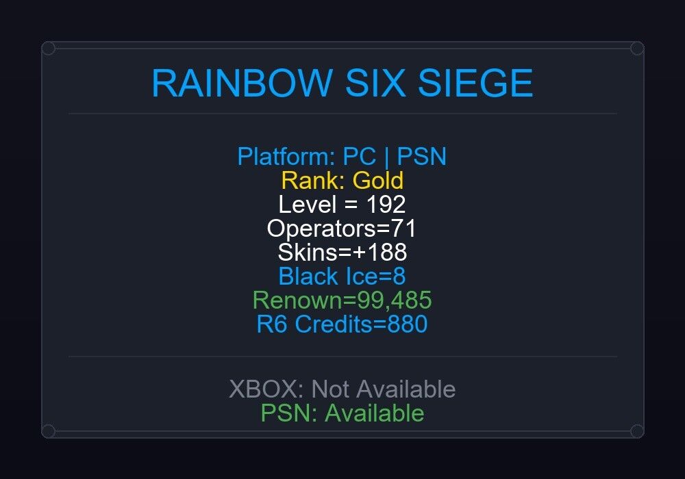 If the account level is above 50+, you can play Rainbow Six Siege Ranked Ready matches. You can see all the skins and every detail from here r6skins.locker/profile/10455a53-a39a-4b91-bce3-39981932f367