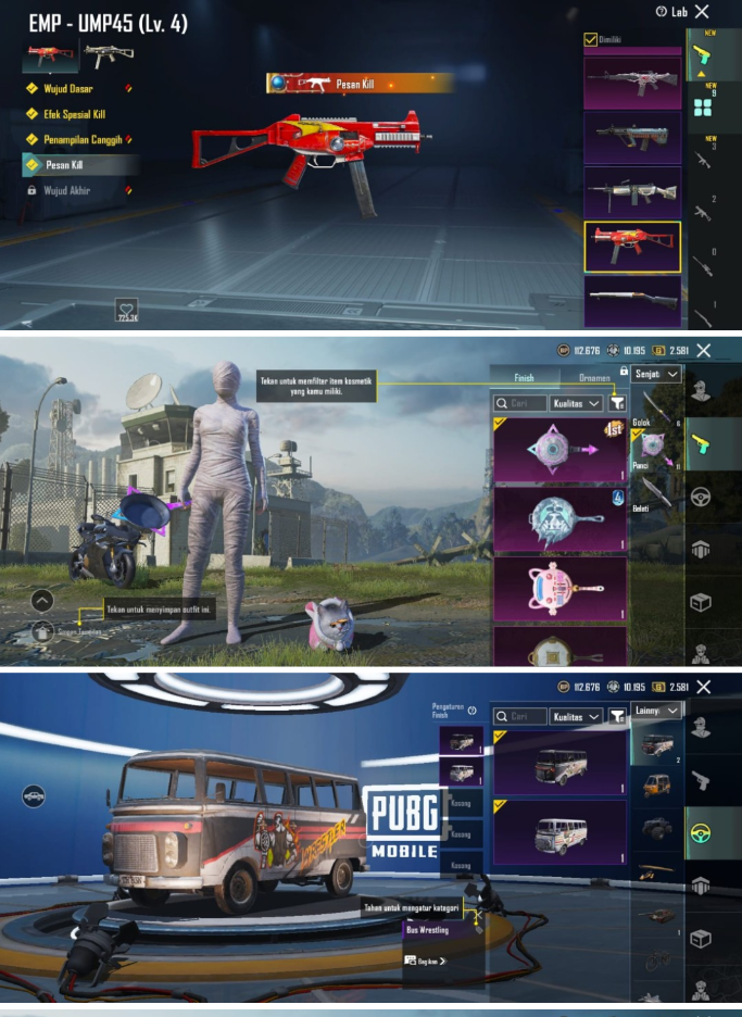 • Level 71 | M416 imprial splendor level 4 | Open hair S5 | Mummy white set | Set smoot hitman | set guardian of the north | set princes magic | Set angel wings | Joker set | SET 3 Colour | Outfit set 200 | helm 40 | helmet nebula | bags 31 | bags joker | weapon lab 9 | 3 weapon lab kill message | weapon skin 57 | Emote 100 | Emote mummy | ice victory | colling snake | guardian off north | smoot hitman emote | Vihicle Ducati red | Ducati Black | uaz good | dacia good | all vehicle good |