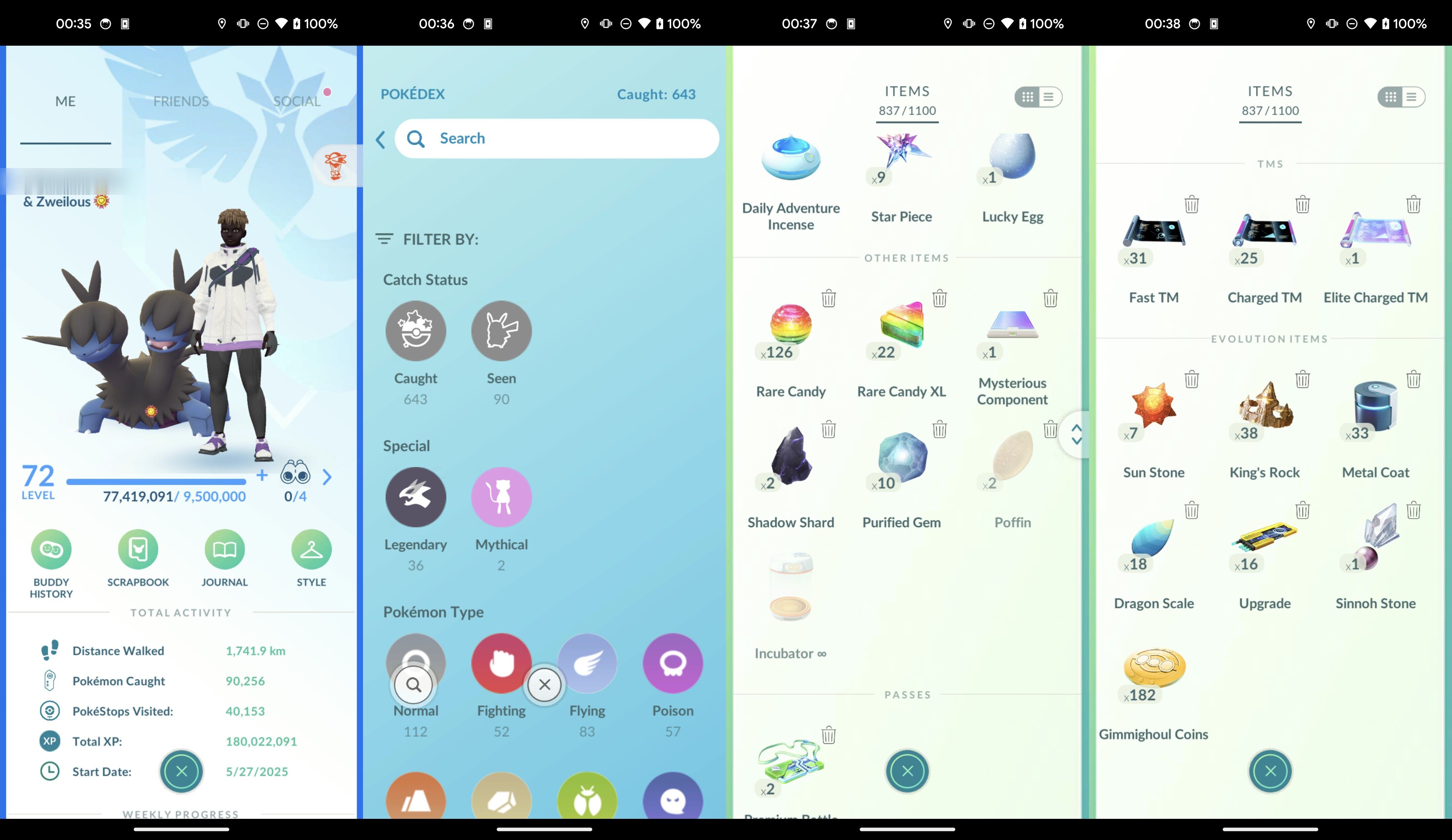 Home » Products » Level 72 Account 15M Dust, 100IVs Necrozma, 4 Hundo Legends, 454 Total Pokemon, 40 Perfects, 159 Legends, 12 Shiny Legends, 258 Shinies, Item Bag 1100