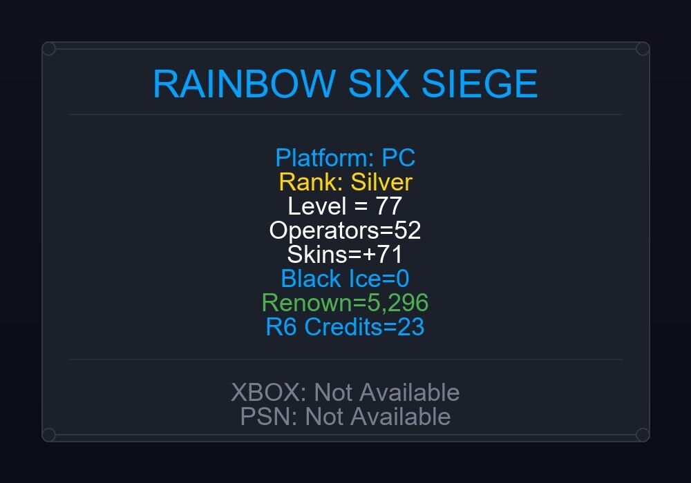 If the account level is above 50+, you can play Rainbow Six Siege Ranked Ready matches. You can see all the skins and every detail from here r6skins.locker/profile/2c3f4d4a-2f7f-45a4-8b08-f2006e5eee22