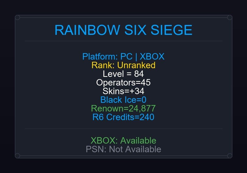 If the account level is above 50+, you can play Rainbow Six Siege Ranked Ready matches. You can see all the skins and every detail from here r6skins.locker/profile/76e2796c-6b26-4601-839d-4292e0053294