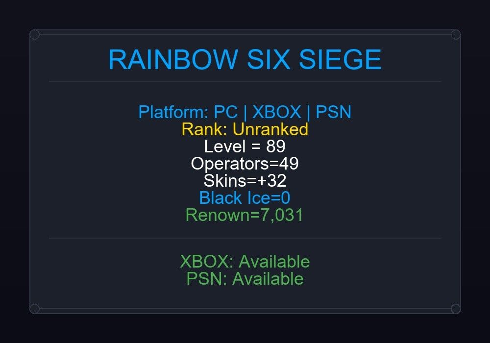 If the account level is above 50+, you can play Rainbow Six Siege Ranked Ready matches. You can see all the skins and every detail from here r6skins.locker/profile/c9c7b098-110d-4b98-9776-20d280acef79