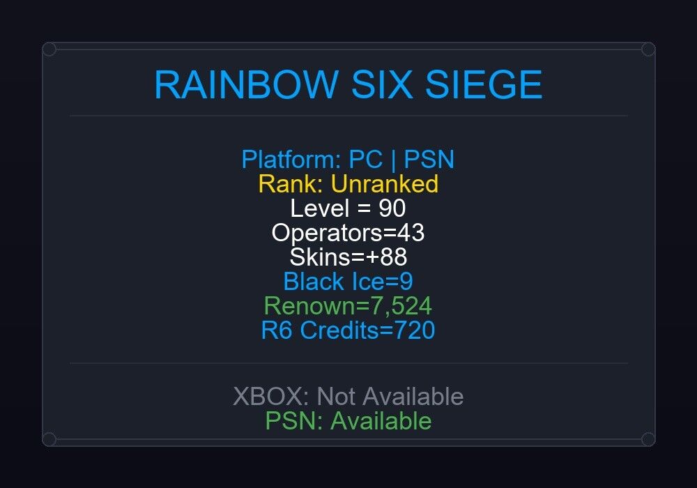 If the account level is above 50+, you can play Rainbow Six Siege Ranked Ready matches. You can see all the skins and every detail from here r6skins.locker/profile/004bdfad-6646-49a2-a845-aca43de26f6b