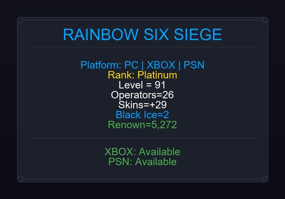 If the account level is above 50+, you can play Rainbow Six Siege Ranked Ready matches. You can see all the skins and every detail from here r6skins.locker/profile/549671c5-2b8e-4b25-b558-9da5cd7fc21f