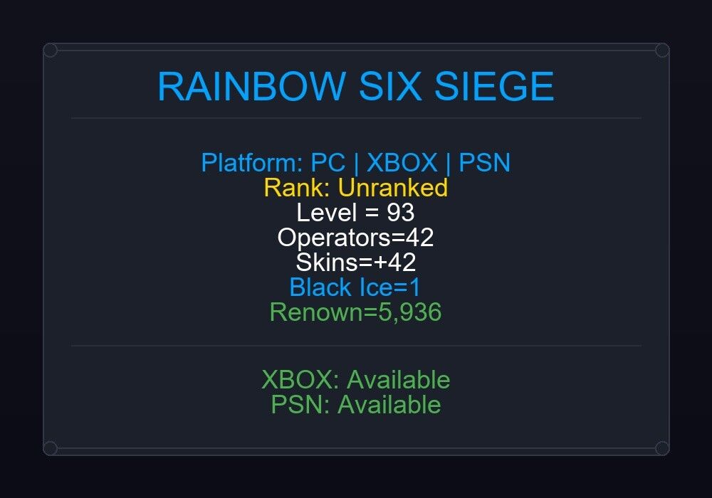 If the account level is above 50+, you can play Rainbow Six Siege Ranked Ready matches. You can see all the skins and every detail from here r6skins.locker/profile/60f45941-da87-42fd-afb5-5acc23db8132