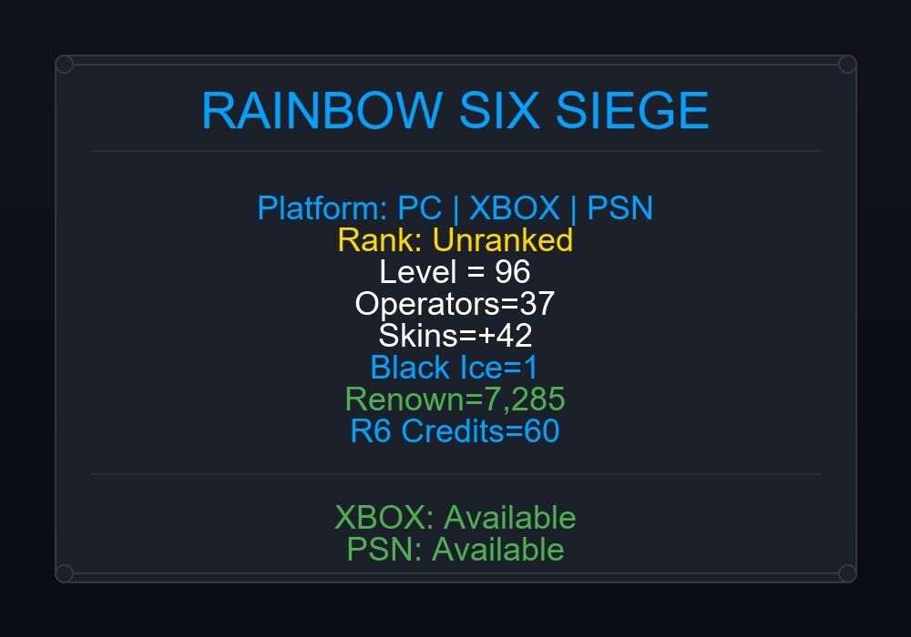 If the account level is above 50+, you can play Rainbow Six Siege Ranked Ready matches. You can see all the skins and every detail from here r6skins.locker/profile/764acf9b-64f9-4386-9b43-a17311c67f1e