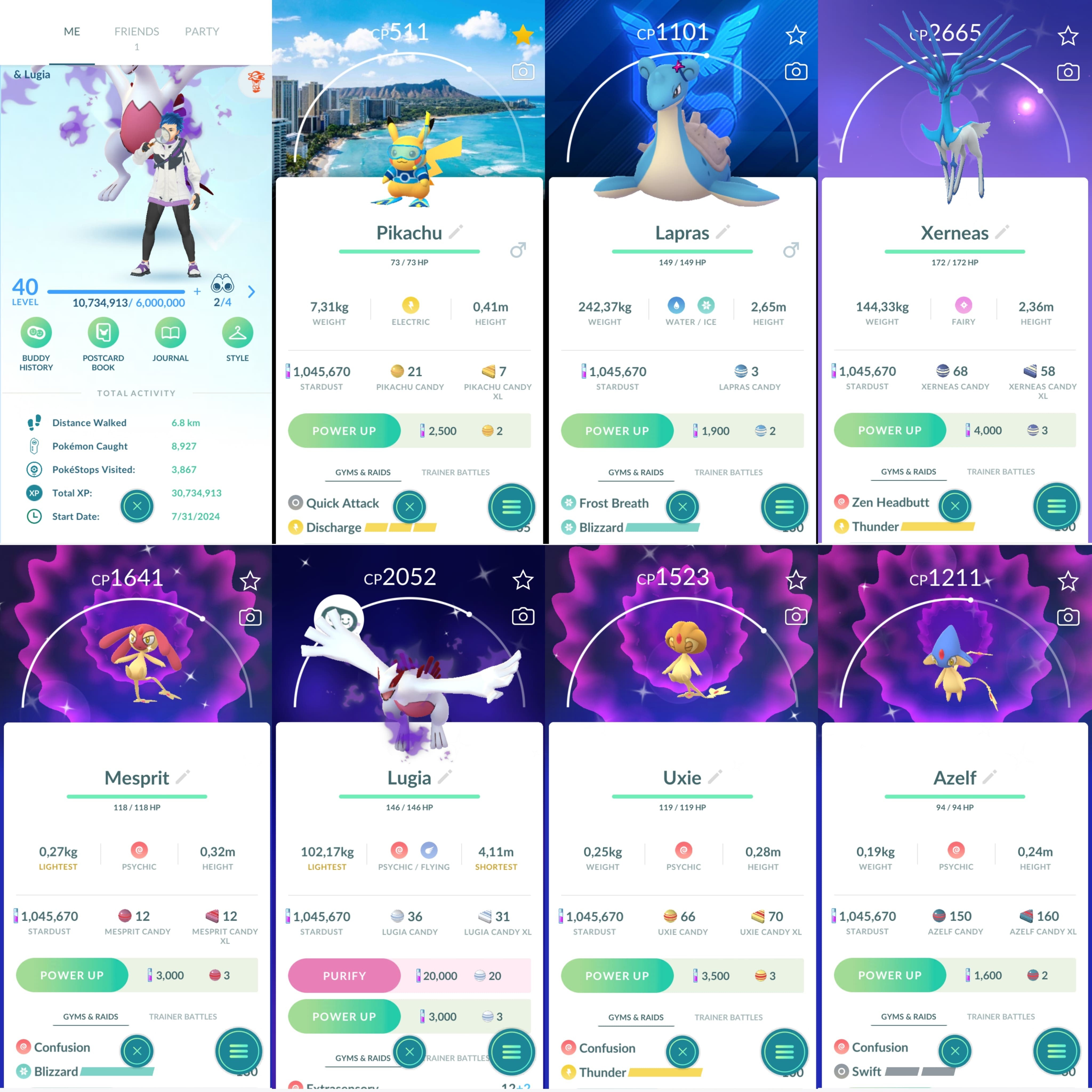 Pokemon Go Account – 1259 LV40 Pikachu WCS2024 BG Hawaii Sp BG Ponyta+Lapras Shiny: shadow lugia, xerneas, mesprit, uxie, azelf, Aerodactyl