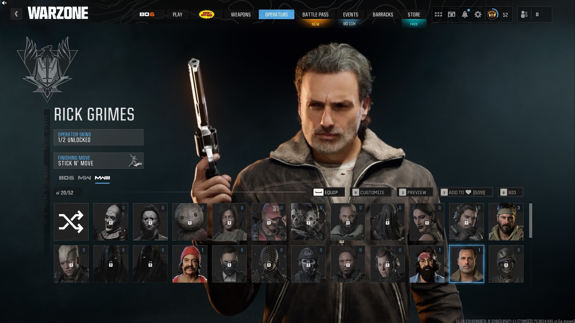 Prestige 2 Rick Grimes Skin | x90 Gun Leveled | x5 Battlepass Mix Skins | x9 Diamond | Kar98 Max Gold | Cheech Chong Bundle