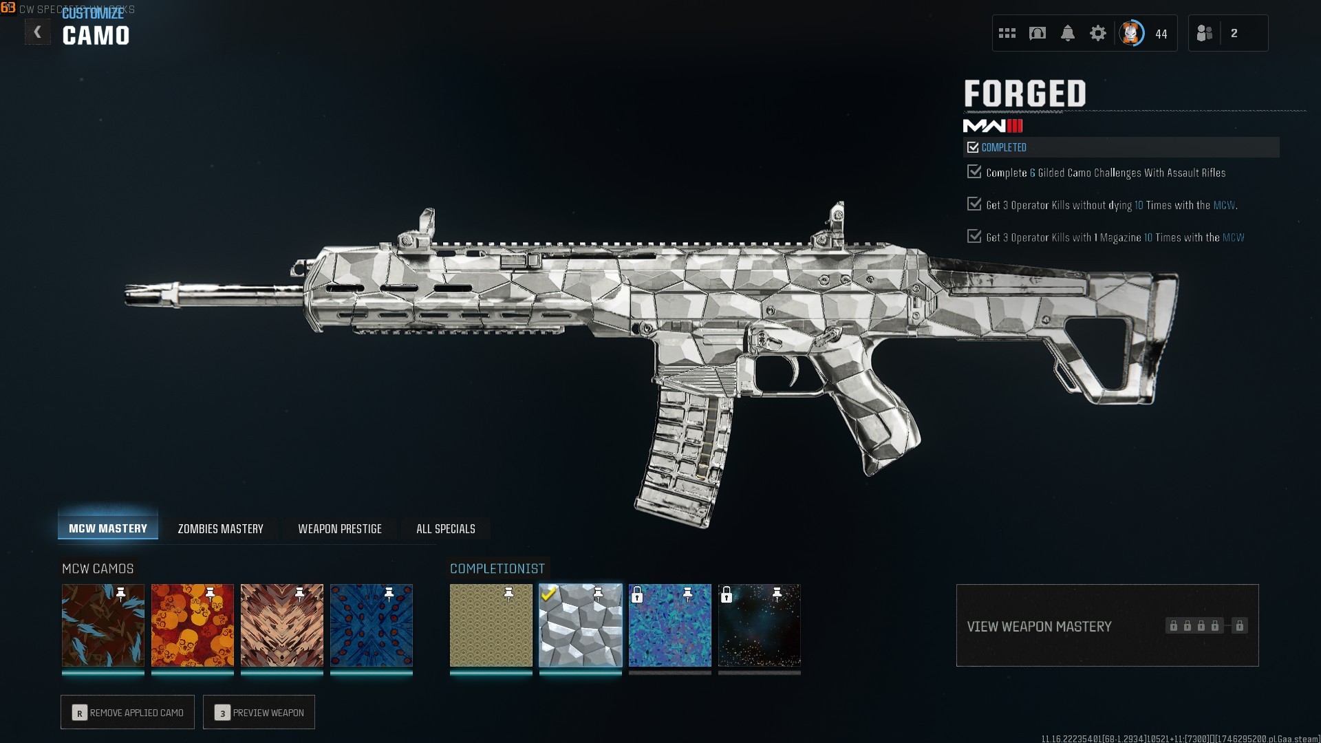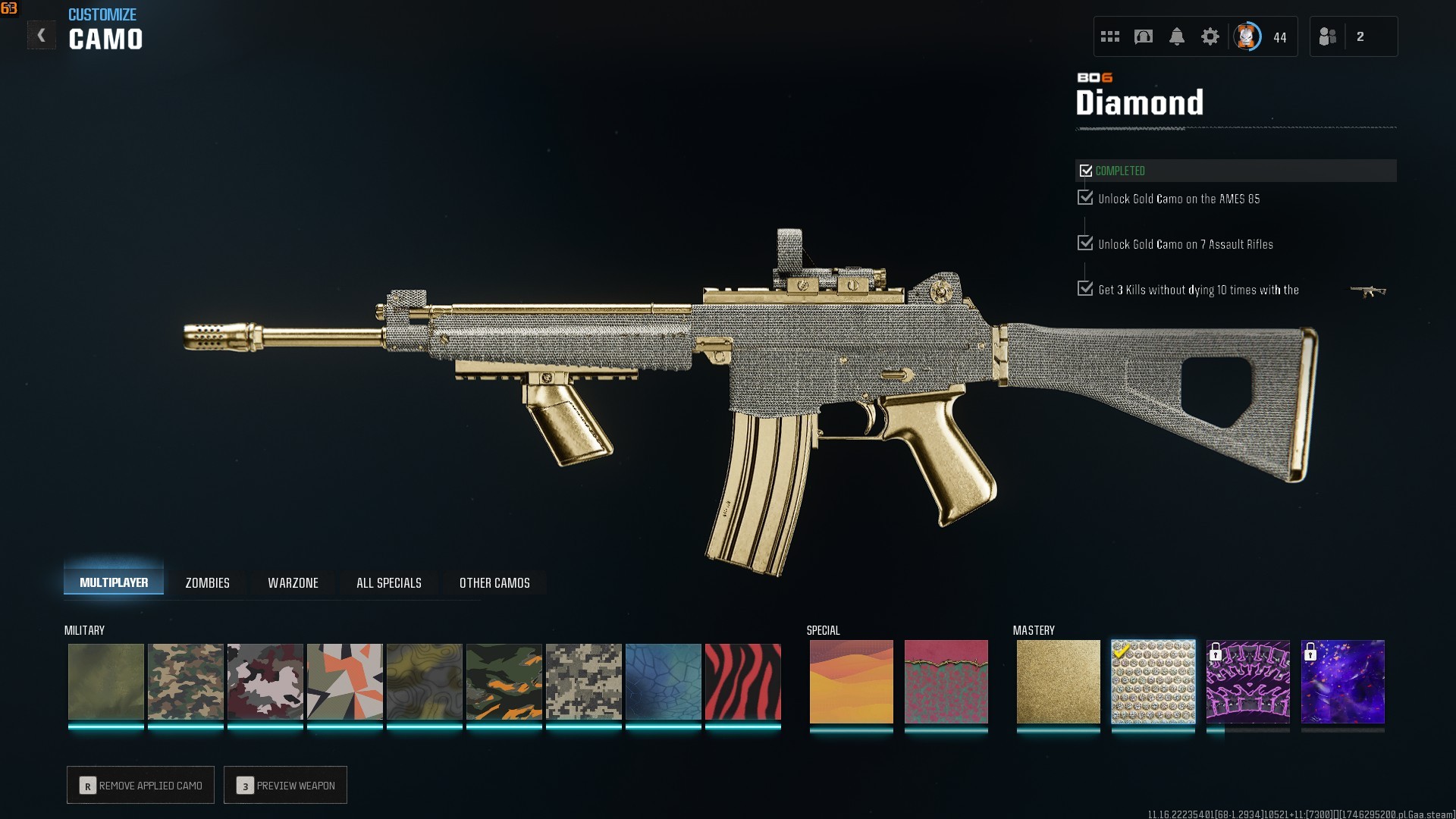 * Diamond and Forged Camo ARs Bo6/Mw3
