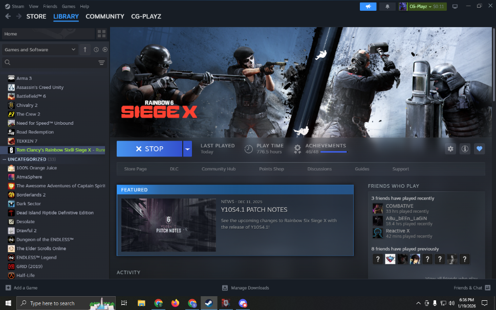 Home » Products » R6+35 Games PurchasedLeveI 163SteamEmerald RankStacked Account75/76 Operators Unlocked750+ Hours Played200+ Skins190 R6 Credit11 Black Ice