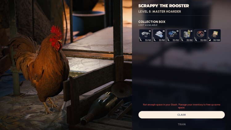 Everything maxed out—stash, workbench, scrappy.